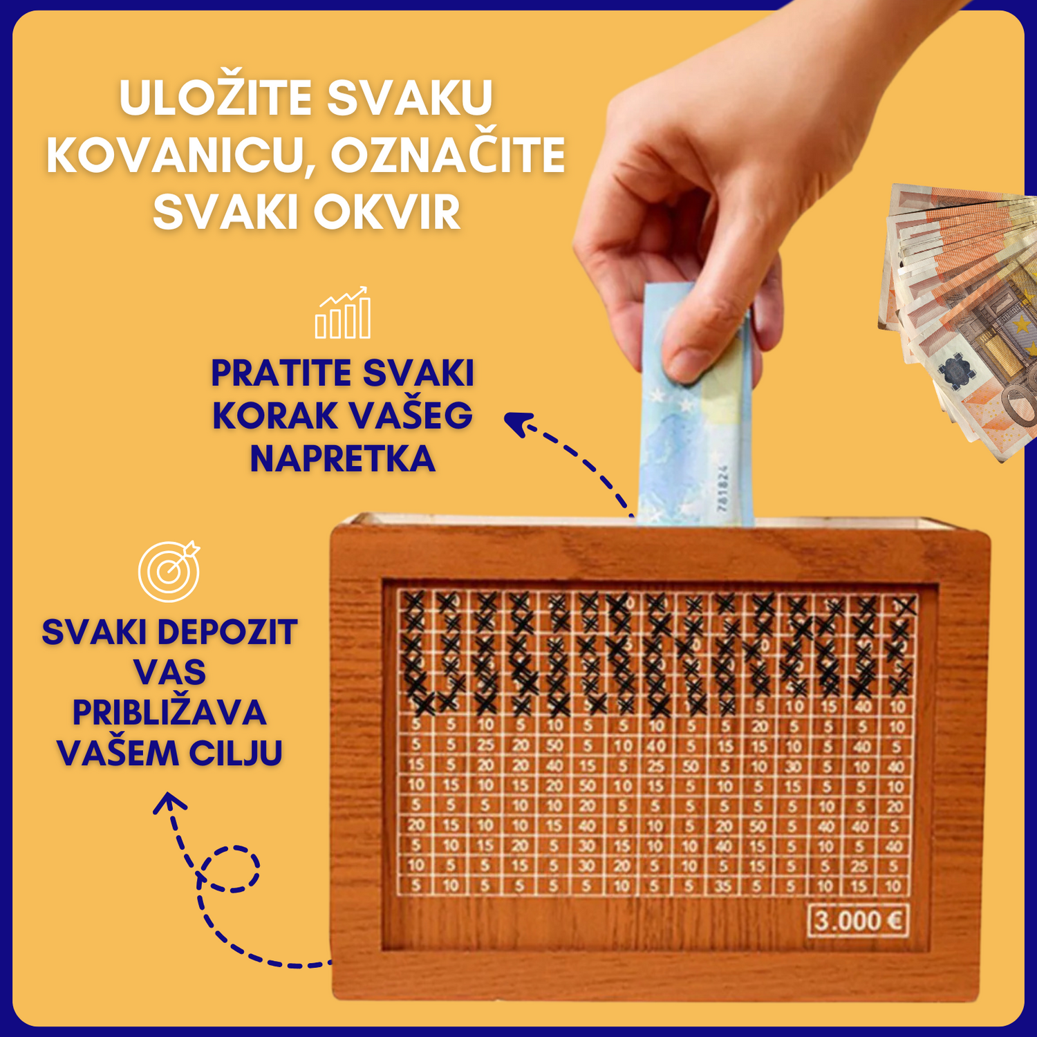 Uz svaki depozit, označite kućicu koja odgovara iznosu koji ste dodali. Tako možete pratiti svoj napredak u stvarnom vremenu.